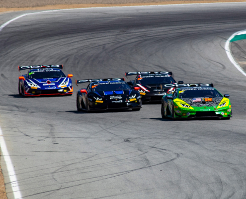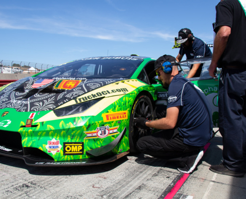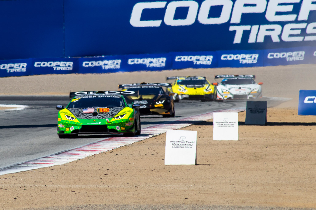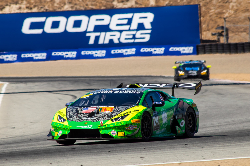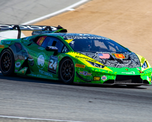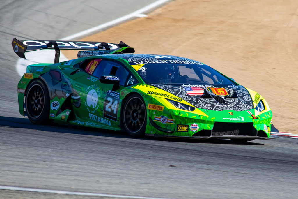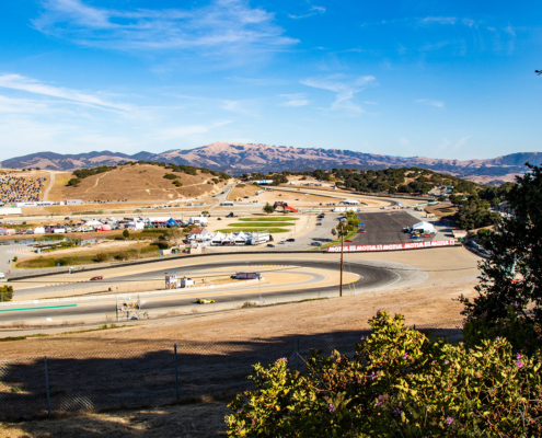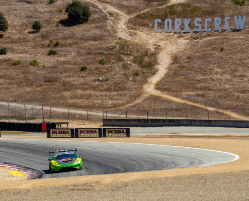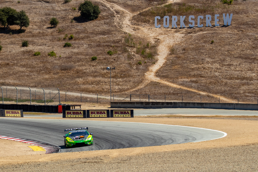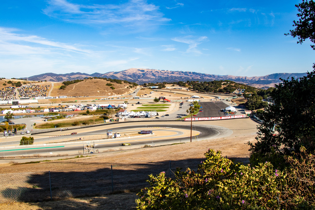 Inside the #24 elephantea race car Negotiating the twists of the venerable Laguna Seca road course.