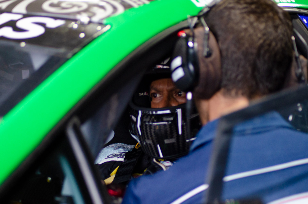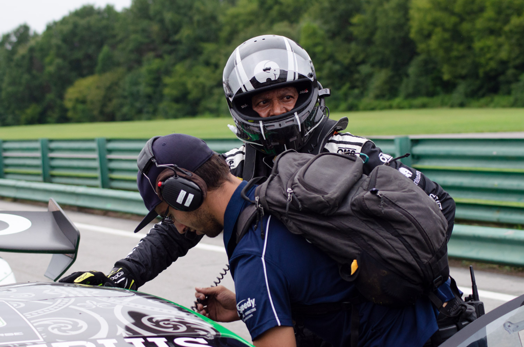 Pilots-eye view from the cockpit of the #24 elephantea race car as Ron Atapattu takes a high-speed lap around V.I.R.